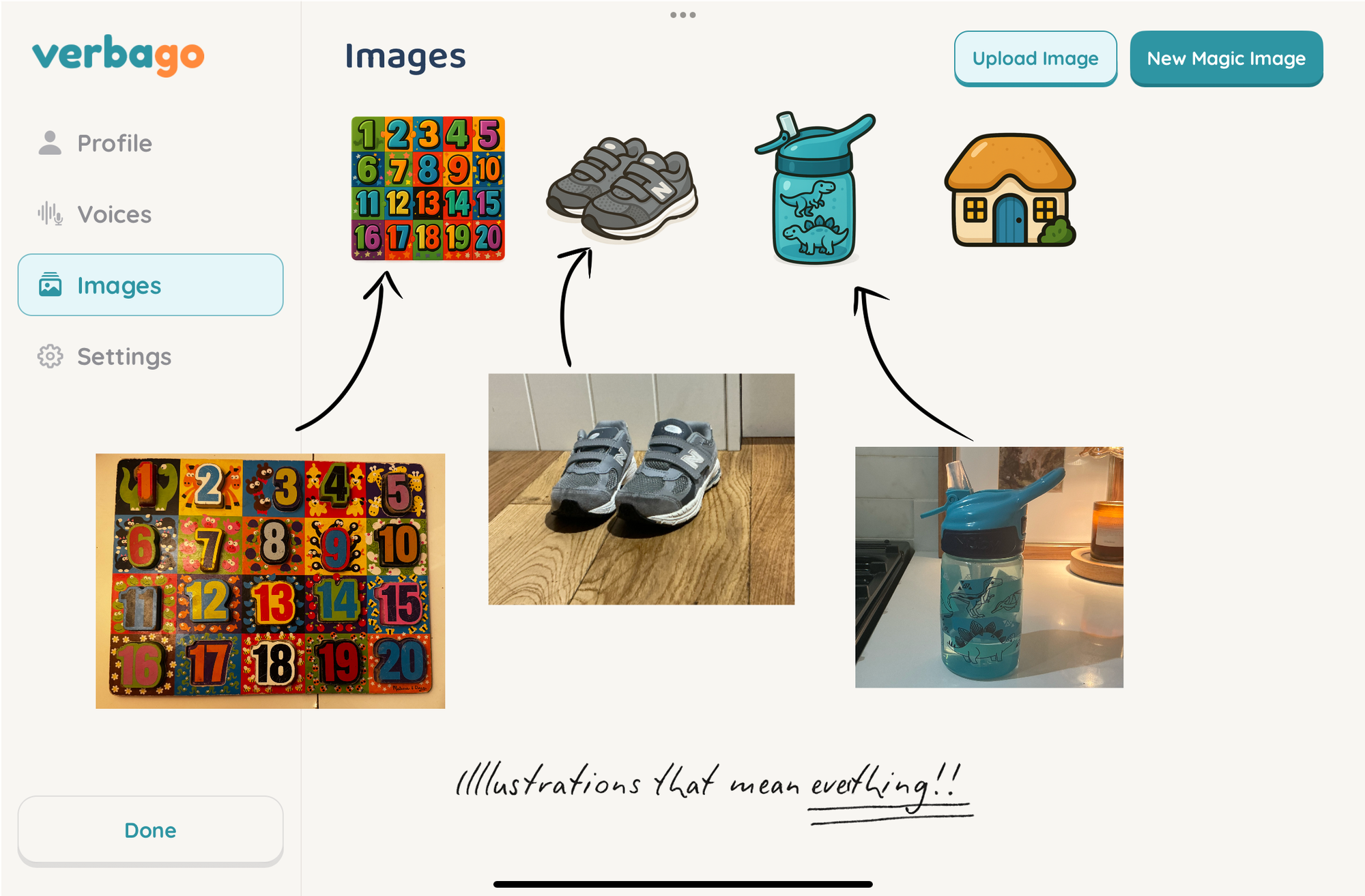 Verbago is an AAC app designed to be as unique as your child. Every board, every image, every voice — it’s all customisable to reflect their world.
