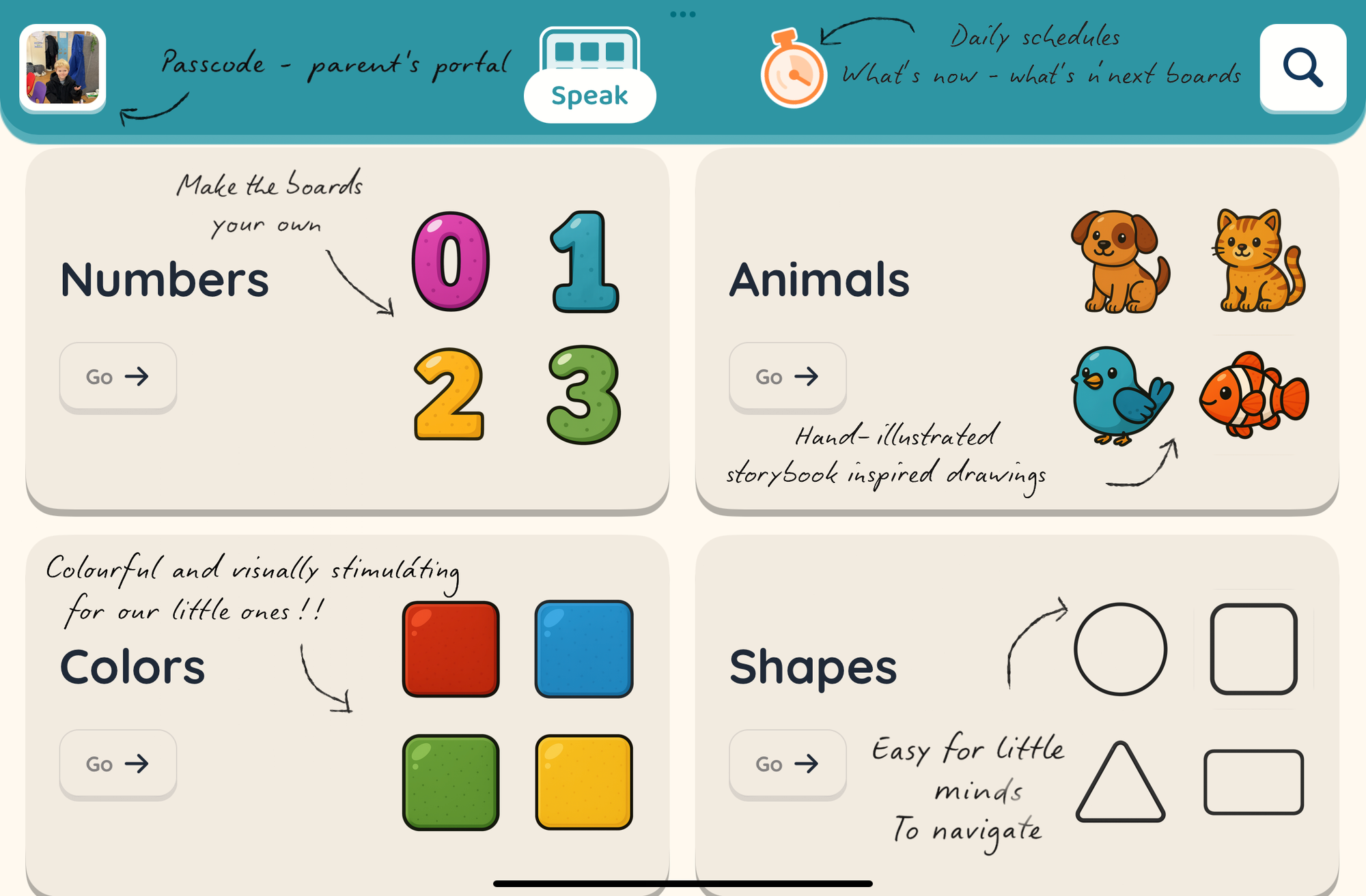 With my husband being a software engineer, we decided to build an app that would truly empower our little boy; one that celebrated his world, his visuals, and his voice.